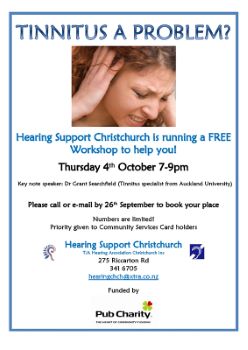 Hearing Support Christchurch is running a tinnitus talk next week with guest speaker Dr Grant Searchfield - an Associate Professor from the University of Auckland. Grant is an expert in his field and an entertaining speaker. Hearing Support know directly if you would like to attend.